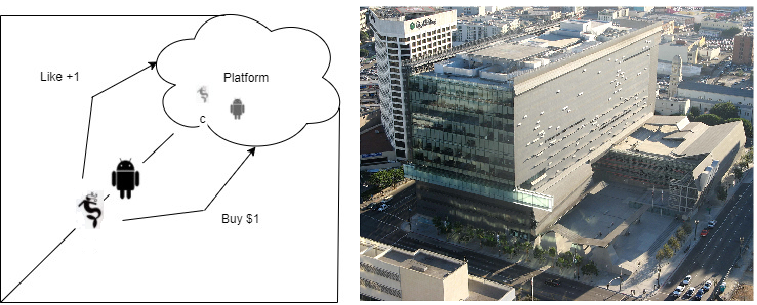 Social media currencies (part of the broader Bratton term fabricated currencies) are a recurrent pattern in the platforms of our era: likes, shares, citations, retweets, +1. From a user finance point of view, one of the striking things about a social media currency is how hard it is to spend. Certainly it comes with attention, you can earn money off it as a resource, and collections of it have compounding, snowball effects. Yet the mechanics are strikingly indirect for objects which were digital from the start of their short history. You can’t buy a sandwich with Facebook likes the way you can with dollars. The likes are instead at the start of a multi-step supply chain of, say, social media capital, advertisement placement, rent through advertisement clicks on the social media asset, delivery in a traditional exchange currency, and finally use at the sandwich shop counter. Reversing the direction, entire identities can be constructed and sold en bloc, likes can be manufactured out of human or robot labour, but it’s a logistical chain, not a retail transaction. As assets go, social media capital is rather illiquid.